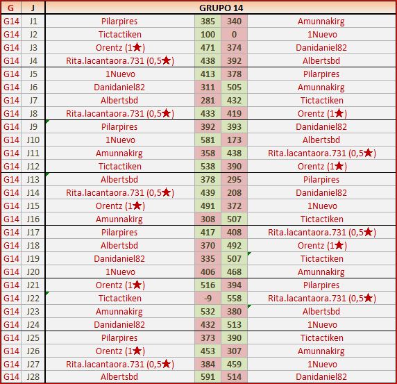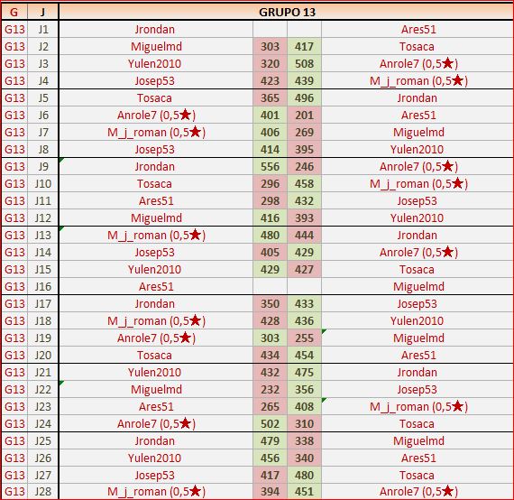 Deja un comentarioEn está página se irán publicando los resultados de las diferentes partidas, siendo ambos jugadores los responsables de subirlos, o comprobando que ya hayan sido subidos, insertando un COMENTARIO en la parte inferior de la pantalla (opción «Deja tu comentario«), indicando el nombre de los dos jugadores y los puntos obtenidos en la partida.