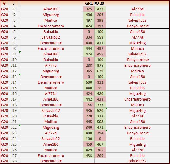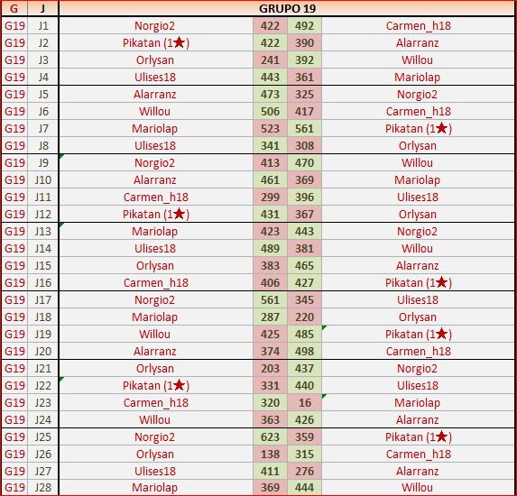 Deja un comentarioEn está página se irán publicando los resultados de las diferentes partidas, siendo ambos jugadores los responsables de subirlos, o comprobando que ya hayan sido subidos, insertando un COMENTARIO en la parte inferior de la pantalla (opción «Deja tu comentario«), indicando el nombre de los dos jugadores y los puntos obtenidos en la partida.