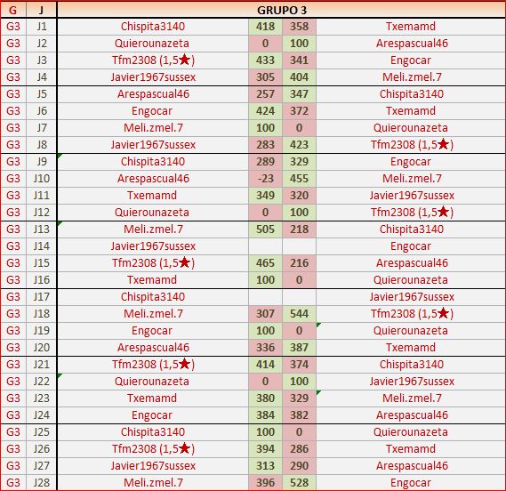 Deja un comentarioEn está página se irán publicando los resultados de las diferentes partidas, siendo ambos jugadores los responsables de subirlos, o comprobando que ya hayan sido subidos, insertando un COMENTARIO en la parte inferior de la pantalla (opción «Deja tu comentario«), indicando el nombre de los dos jugadores y los puntos obtenidos en la partida.