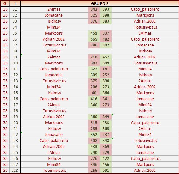 Deja un comentarioEn está página se irán publicando los resultados de las diferentes partidas, siendo ambos jugadores los responsables de subirlos, o comprobando que ya hayan sido subidos, insertando un COMENTARIO en la parte inferior de la pantalla (opción «Deja tu comentario«), indicando el nombre de los dos jugadores y los puntos obtenidos en la partida.