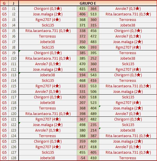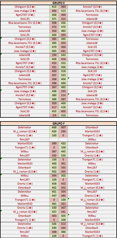 Deja un comentarioEn está página se irán publicando los resultados de las diferentes partidas, siendo ambos jugadores los responsables de subirlos, o comprobando que ya hayan sido subidos, insertando un COMENTARIO en la parte inferior de la pantalla (opción «Deja tu comentario«), indicando el nombre de los dos jugadores y los puntos obtenidos en la partida.