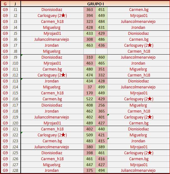 Deja un comentarioEn está página se irán publicando los resultados de las diferentes partidas, siendo ambos jugadores los responsables de subirlos, o comprobando que ya hayan sido subidos, insertando un COMENTARIO en la parte inferior de la pantalla (opción «Deja tu comentario«), indicando el nombre de los dos jugadores y los puntos obtenidos en la partida.