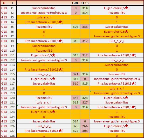 Deja un comentarioEn está página se irán publicando los resultados de las diferentes partidas, siendo ambos jugadores los responsables de subirlos, o comprobando que ya hayan sido subidos, insertando un COMENTARIO en la parte inferior de la pantalla (opción «Deja tu comentario«), indicando el nombre de los dos jugadores y los puntos obtenidos en la partida.