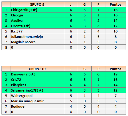 Deja un comentarioEn está página se irán publicando los resultados de las diferentes partidas, siendo ambos jugadores los responsables de subirlos, o comprobando que ya hayan sido subidos, insertando un COMENTARIO en la parte inferior de la pantalla (opción «Deja tu comentario«), indicando el nombre de los dos jugadores y los puntos obtenidos en la partida.