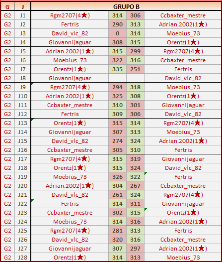 Deja un comentarioEn está página se irán publicando los resultados de las diferentes partidas, siendo ambos jugadores los responsables de subirlos, o comprobando que ya hayan sido subidos, insertando un COMENTARIO en la parte inferior de la pantalla (opción «Deja tu comentario«), indicando el nombre de los dos jugadores y los puntos obtenidos en la partida.