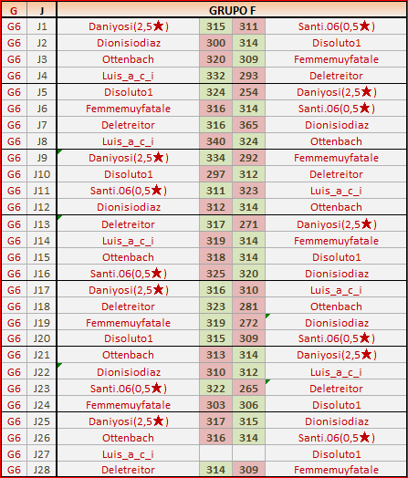 Deja un comentarioEn está página se irán publicando los resultados de las diferentes partidas, siendo ambos jugadores los responsables de subirlos, o comprobando que ya hayan sido subidos, insertando un COMENTARIO en la parte inferior de la pantalla (opción «Deja tu comentario«), indicando el nombre de los dos jugadores y los puntos obtenidos en la partida.