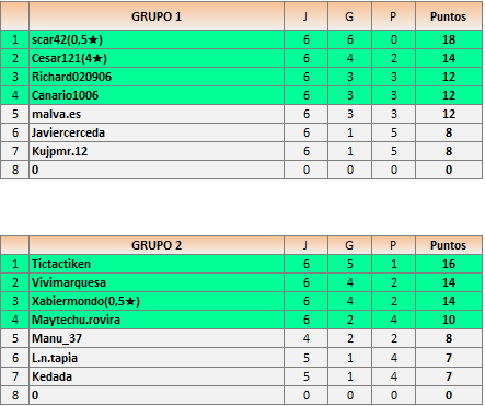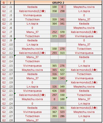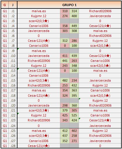 Deja un comentarioEn está página se irán publicando los resultados de las diferentes partidas, siendo ambos jugadores los responsables de subirlos, o comprobando que ya hayan sido subidos, insertando un COMENTARIO en la parte inferior de la pantalla (opción “Deja tu comentario“), indicando el nombre de los dos jugadores y los puntos obtenidos en la partida.