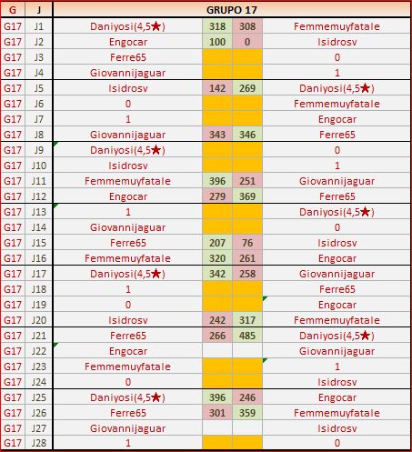 Deja un comentarioEn está página se irán publicando los resultados de las diferentes partidas, siendo ambos jugadores los responsables de subirlos, o comprobando que ya hayan sido subidos, insertando un COMENTARIO en la parte inferior de la pantalla (opción “Deja tu comentario“), indicando el nombre de los dos jugadores y los puntos obtenidos en la partida.
