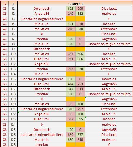 Deja un comentarioEn está página se irán publicando los resultados de las diferentes partidas, siendo ambos jugadores los responsables de subirlos, o comprobando que ya hayan sido subidos, insertando un COMENTARIO en la parte inferior de la pantalla (opción “Deja tu comentario“), indicando el nombre de los dos jugadores y los puntos obtenidos en la partida.