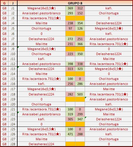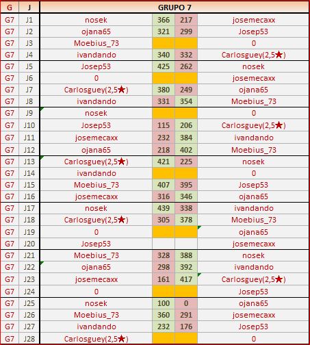 Deja un comentarioEn está página se irán publicando los resultados de las diferentes partidas, siendo ambos jugadores los responsables de subirlos, o comprobando que ya hayan sido subidos, insertando un COMENTARIO en la parte inferior de la pantalla (opción “Deja tu comentario“), indicando el nombre de los dos jugadores y los puntos obtenidos en la partida.