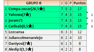 En está página se irán publicando los resultados de las diferentes partidas, siendo ambos jugadores responsables de subirlos o de comprobar que ya hayan sido publicados insertando un COMENTARIO en la parte inferior de la pantalla (opción “Deja tu comentario”), indicando el nombre de los dos jugadores y los puntos obtenidos en la partida.