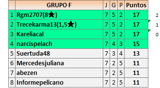 Deja un comentarioEn está página se irán publicando los resultados de las diferentes partidas, siendo ambos jugadores responsables de subirlos o de comprobar que ya hayan sido publicados insertando un COMENTARIO en la parte inferior de la pantalla (opción “Deja tu comentario”), indicando el nombre de los dos jugadores y los puntos obtenidos en la partida.