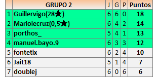 Deja un comentarioEn está página se irán publicando los resultados de las diferentes partidas, siendo ambos jugadores responsables de subirlos o de comprobar que ya hayan sido publicados insertando un COMENTARIO en la parte inferior de la pantalla (opción “Deja tu comentario”), indicando el nombre de los dos jugadores y los puntos obtenidos en la partida.