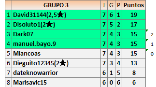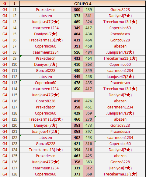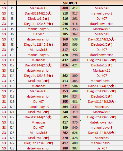 Deja un comentarioEn está página se irán publicando los resultados de las diferentes partidas, siendo ambos jugadores responsables de subirlos o de comprobar que ya hayan sido publicados insertando un COMENTARIO en la parte inferior de la pantalla (opción “Deja tu comentario”), indicando el nombre de los dos jugadores y los puntos obtenidos en la partida.