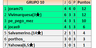4En está página se irán publicando los resultados de las diferentes partidas, siendo ambos jugadores responsables de subirlos o de comprobar que ya hayan sido publicados insertando un COMENTARIO en la parte inferior de la pantalla (opción “Deja tu comentario”), indicando el nombre de los dos jugadores y los puntos obtenidos en la partida.