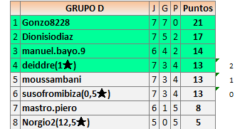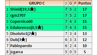 Deja un comentarioEn está página se irán publicando los resultados de las diferentes partidas, siendo ambos jugadores responsables de subirlos o de comprobar que ya hayan sido publicados insertando un COMENTARIO en la parte inferior de la pantalla (opción “Deja tu comentario”), indicando el nombre de los dos jugadores y los puntos obtenidos en la partida.