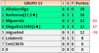 Deja un comentarioEn está página se irán publicando los resultados de las diferentes partidas, siendo ambos jugadores responsables de subirlos o de comprobar que ya hayan sido publicados insertando un COMENTARIO en la parte inferior de la pantalla (opción “Deja tu comentario”), indicando el nombre de los dos jugadores y los puntos obtenidos en la partida.