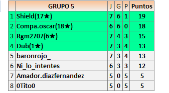 Deja un comentarioEn está página se irán publicando los resultados de las diferentes partidas, siendo ambos jugadores responsables de subirlos o de comprobar que ya hayan sido publicados insertando un COMENTARIO en la parte inferior de la pantalla (opción “Deja tu comentario”), indicando el nombre de los dos jugadores y los puntos obtenidos en la partida.