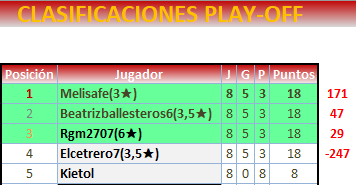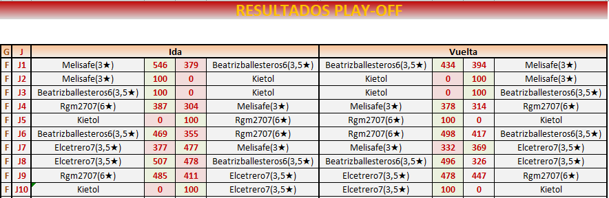 Fin PLAY OFF VUELTA: 20 de ABRIL a las 21:00