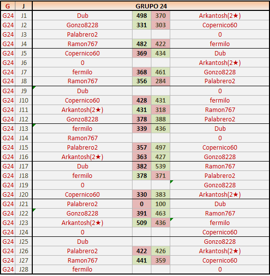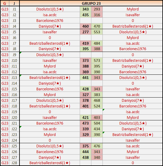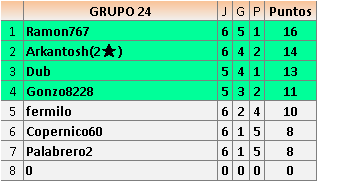 Deja un comentarioEn está página se irán publicando los resultados de las diferentes partidas, siendo ambos jugadores responsables de subirlos o de comprobar que ya hayan sido publicados insertando un COMENTARIO en la parte inferior de la pantalla (opción “Deja tu comentario”), indicando el nombre de los dos jugadores y los puntos obtenidos en la partida.