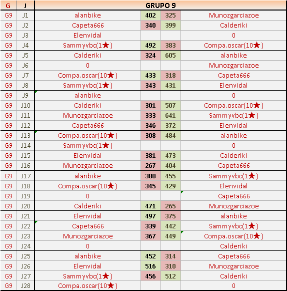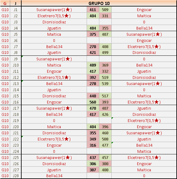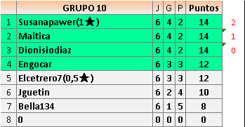 Deja un comentarioEn está página se irán publicando los resultados de las diferentes partidas, siendo ambos jugadores responsables de subirlos o de comprobar que ya hayan sido publicados insertando un COMENTARIO en la parte inferior de la pantalla (opción “Deja tu comentario”), indicando el nombre de los dos jugadores y los puntos obtenidos en la partida.