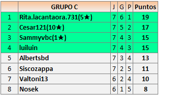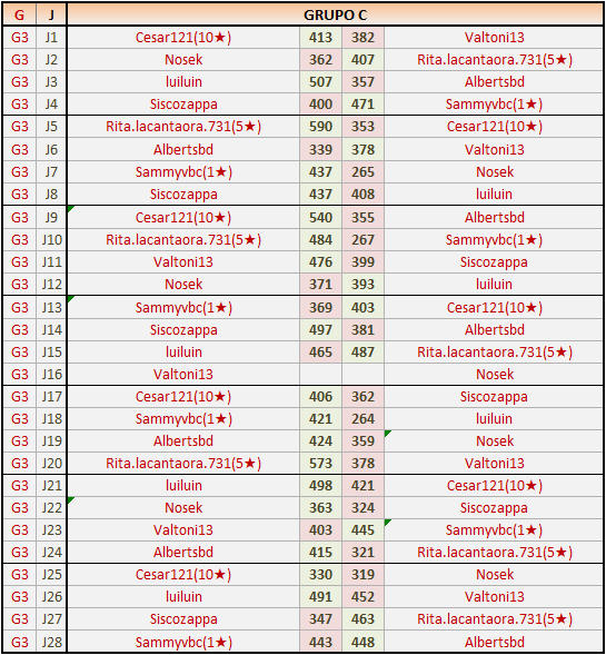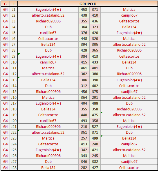 Deja un comentarioEn está página se irán publicando los resultados de las diferentes partidas, siendo ambos jugadores responsables de subirlos o de comprobar que ya hayan sido publicados insertando un COMENTARIO en la parte inferior de la pantalla (opción “Deja tu comentario”), indicando el nombre de los dos jugadores y los puntos obtenidos en la partida.