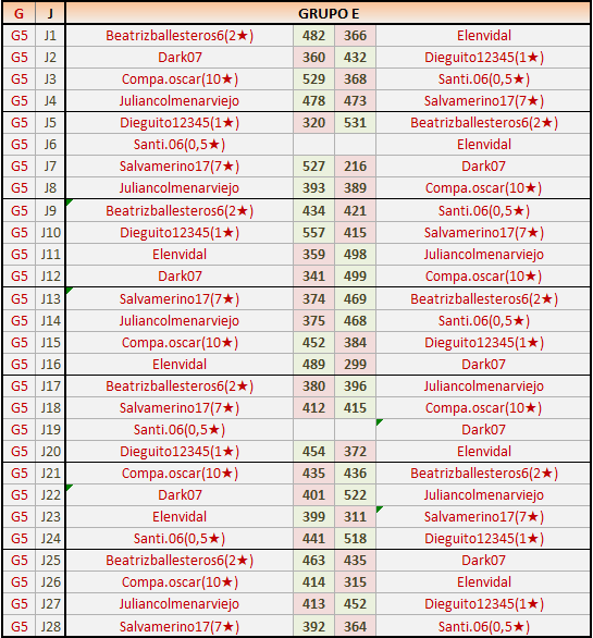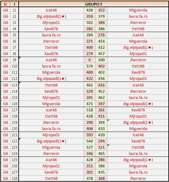 Deja un comentarioEn está página se irán publicando los resultados de las diferentes partidas, siendo ambos jugadores responsables de subirlos o de comprobar que ya hayan sido publicados insertando un COMENTARIO en la parte inferior de la pantalla (opción “Deja tu comentario”), indicando el nombre de los dos jugadores y los puntos obtenidos en la partida.
