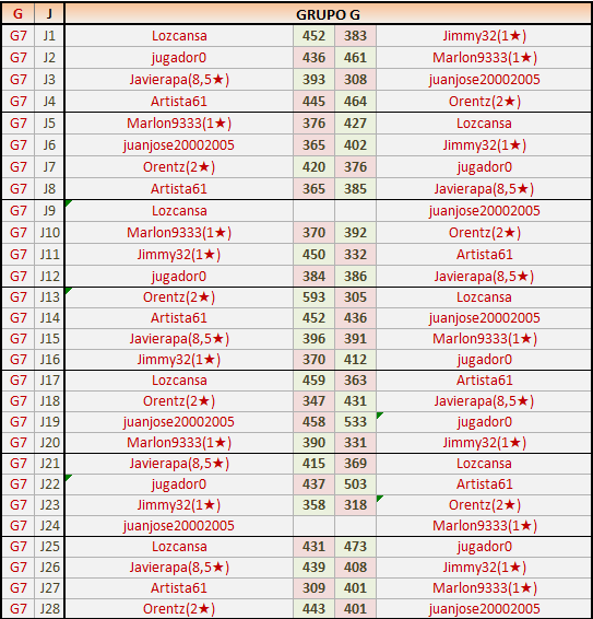 Deja un comentarioEn está página se irán publicando los resultados de las diferentes partidas, siendo ambos jugadores responsables de subirlos o de comprobar que ya hayan sido publicados insertando un COMENTARIO en la parte inferior de la pantalla (opción “Deja tu comentario”), indicando el nombre de los dos jugadores y los puntos obtenidos en la partida.