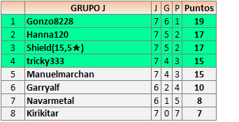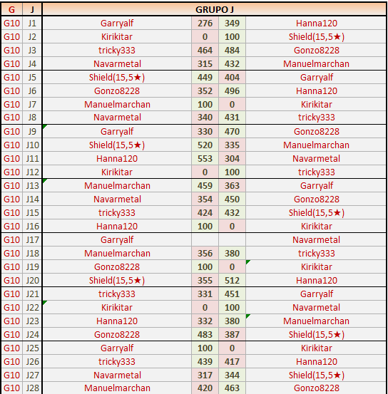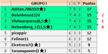 Deja un comentarioEn está página se irán publicando los resultados de las diferentes partidas, siendo ambos jugadores responsables de subirlos o de comprobar que ya hayan sido publicados insertando un COMENTARIO en la parte inferior de la pantalla (opción “Deja tu comentario”), indicando el nombre de los dos jugadores y los puntos obtenidos en la partida.