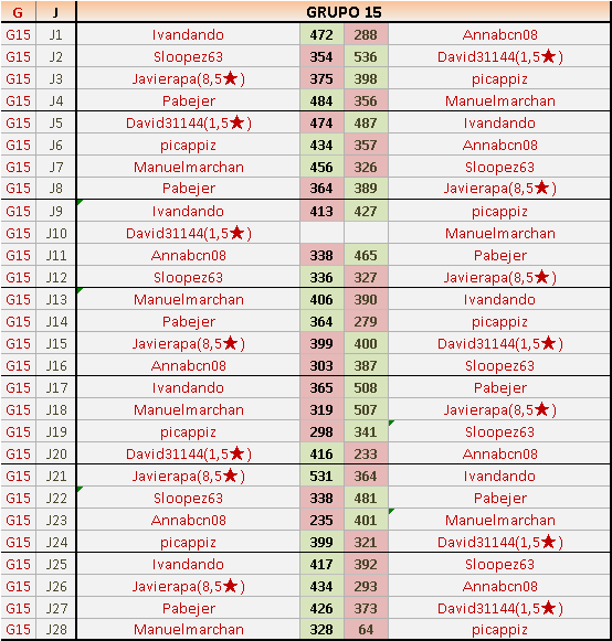 En está página se irán publicando los resultados de las diferentes partidas, siendo ambos jugadores responsables de subirlos o de comprobar que ya hayan sido publicados insertando un COMENTARIO en la parte inferior de la pantalla (opción “Deja tu comentario”), indicando el nombre de los dos jugadores y los puntos obtenidos en la partida.