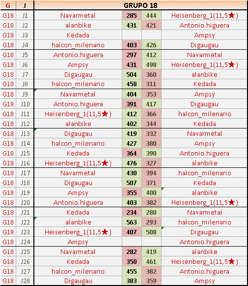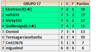 Deja un comentarioEn está página se irán publicando los resultados de las diferentes partidas, siendo ambos jugadores responsables de subirlos o de comprobar que ya hayan sido publicados insertando un COMENTARIO en la parte inferior de la pantalla (opción “Deja tu comentario”), indicando el nombre de los dos jugadores y los puntos obtenidos en la partida.