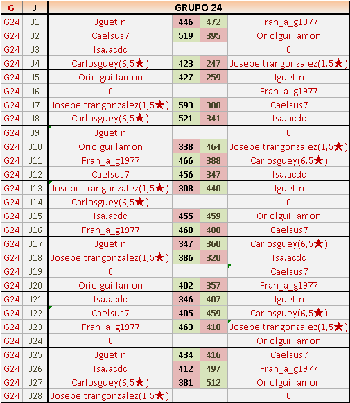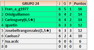 Deja un comentarioEn está página se irán publicando los resultados de las diferentes partidas, siendo ambos jugadores responsables de subirlos o de comprobar que ya hayan sido publicados insertando un COMENTARIO en la parte inferior de la pantalla (opción “Deja tu comentario”), indicando el nombre de los dos jugadores y los puntos obtenidos en la partida.