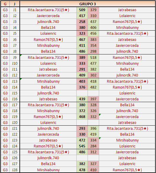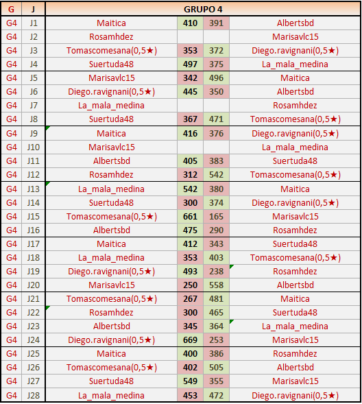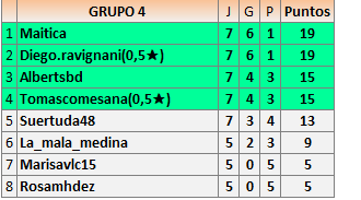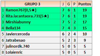 Deja un comentarioEn está página se irán publicando los resultados de las diferentes partidas, siendo ambos jugadores responsables de subirlos o de comprobar que ya hayan sido publicados insertando un COMENTARIO en la parte inferior de la pantalla (opción “Deja tu comentario”), indicando el nombre de los dos jugadores y los puntos obtenidos en la partida.