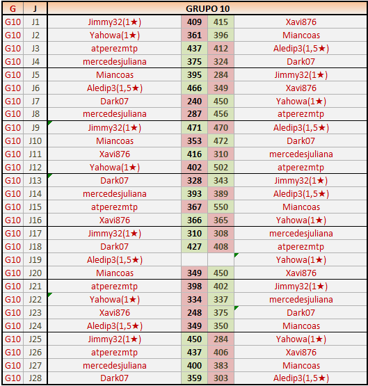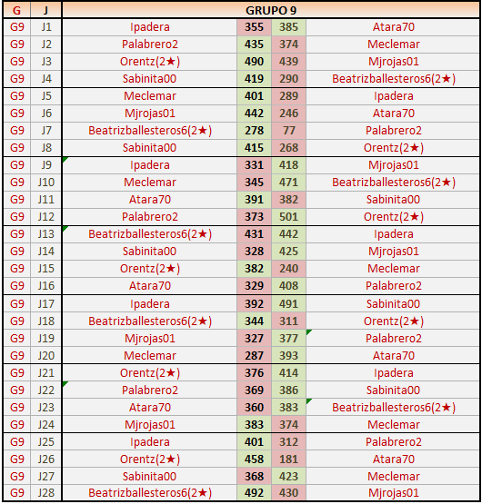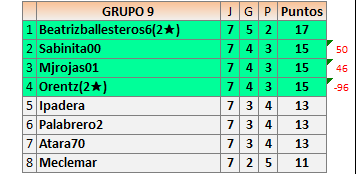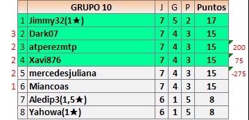 Deja un comentarioEn está página se irán publicando los resultados de las diferentes partidas, siendo ambos jugadores responsables de subirlos o de comprobar que ya hayan sido publicados insertando un COMENTARIO en la parte inferior de la pantalla (opción “Deja tu comentario”), indicando el nombre de los dos jugadores y los puntos obtenidos en la partida.