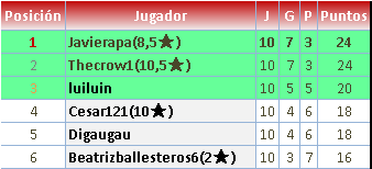 Felicitaciones a JAVIERAPA., THE CROW1 y a todos, son demasiado buenos para mi de verdad, gracias por las palizas