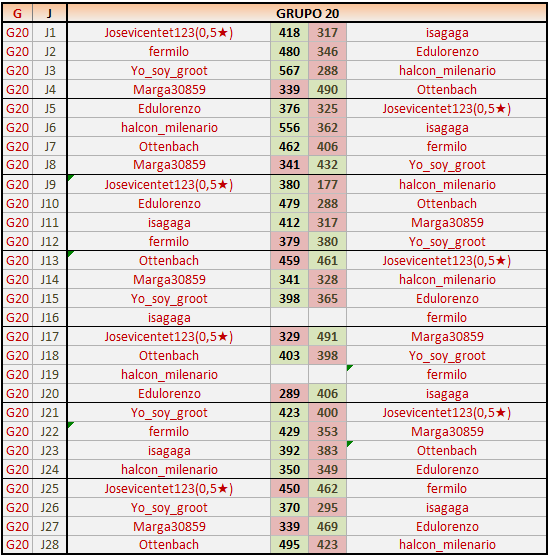Deja un comentarioEn está página se irán publicando los resultados de las diferentes partidas, siendo ambos jugadores responsables de subirlos o de comprobar que ya hayan sido publicados insertando un COMENTARIO en la parte inferior de la pantalla (opción “Deja tu comentario”), indicando el nombre de los dos jugadores y los puntos obtenidos en la partida.