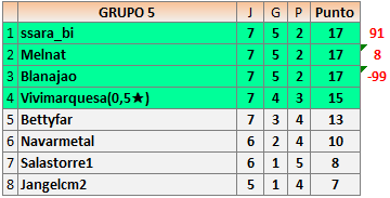 Deja un comentarioEn está página se irán publicando los resultados de las diferentes partidas, siendo ambos jugadores responsables de subirlos o de comprobar que ya hayan sido publicados insertando un COMENTARIO en la parte inferior de la pantalla (opción “Deja tu comentario”), indicando el nombre de los dos jugadores y los puntos obtenidos en la partida.