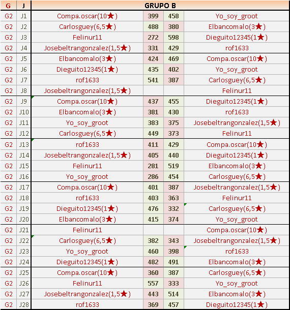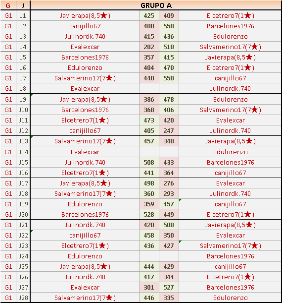 1En está página se irán publicando los resultados de las diferentes partidas, siendo ambos jugadores responsables de subirlos o de comprobar que ya hayan sido publicados insertando un COMENTARIO en la parte inferior de la pantalla (opción “Deja tu comentario”), indicando el nombre de los dos jugadores y los puntos obtenidos en la partida.