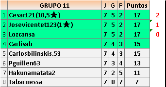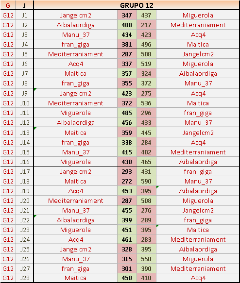 Deja un comentarioEn está página se irán publicando los resultados de las diferentes partidas, siendo ambos jugadores responsables de subirlos o de comprobar que ya hayan sido publicados insertando un COMENTARIO en la parte inferior de la pantalla (opción “Deja tu comentario”), indicando el nombre de los dos jugadores y los puntos obtenidos en la partida.