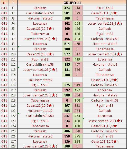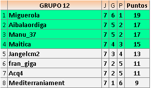 Deja un comentarioEn está página se irán publicando los resultados de las diferentes partidas, siendo ambos jugadores responsables de subirlos o de comprobar que ya hayan sido publicados insertando un COMENTARIO en la parte inferior de la pantalla (opción “Deja tu comentario”), indicando el nombre de los dos jugadores y los puntos obtenidos en la partida.