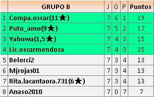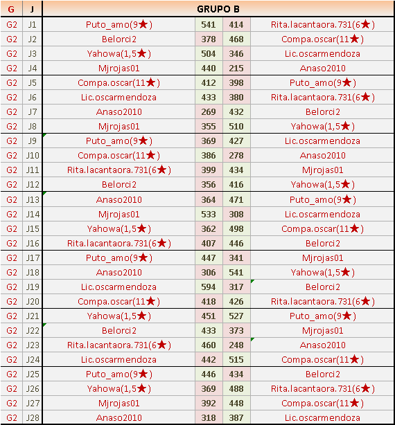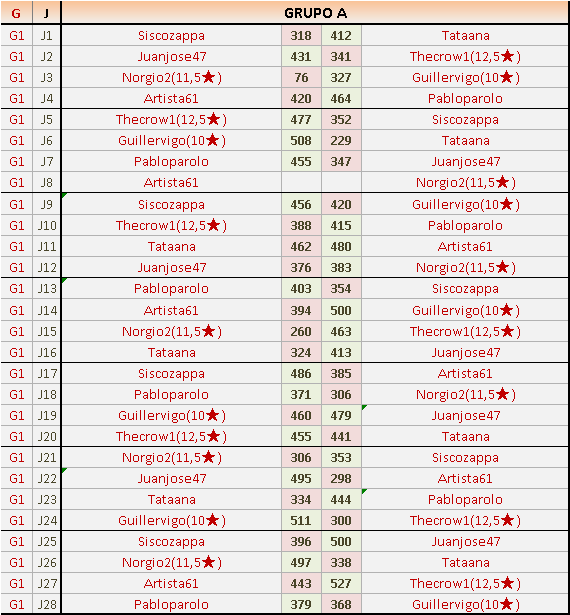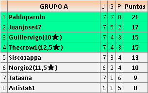 Deja un comentarioEn está página se irán publicando los resultados de las diferentes partidas, siendo ambos jugadores responsables de subirlos o de comprobar que ya hayan sido publicados insertando un COMENTARIO en la parte inferior de la pantalla (opción “Deja tu comentario”), indicando el nombre de los dos jugadores y los puntos obtenidos en la partida.