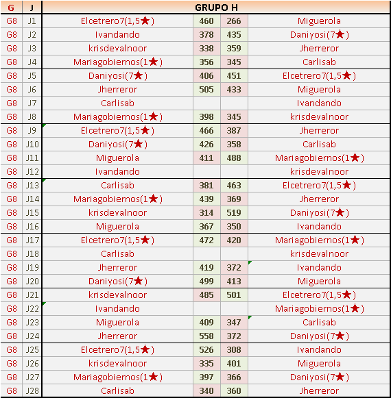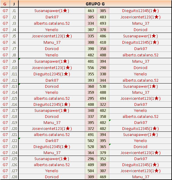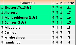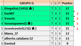 Deja un comentarioEn está página se irán publicando los resultados de las diferentes partidas, siendo ambos jugadores responsables de subirlos o de comprobar que ya hayan sido publicados insertando un COMENTARIO en la parte inferior de la pantalla (opción “Deja tu comentario”), indicando el nombre de los dos jugadores y los puntos obtenidos en la partida.