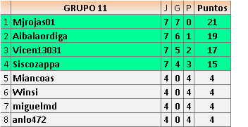 Deja un comentarioEn está página se irán publicando los resultados de las diferentes partidas, siendo ambos jugadores responsables de subirlos o de comprobar que ya hayan sido publicados insertando un COMENTARIO en la parte inferior de la pantalla (opción “Deja tu comentario”), indicando el nombre de los dos jugadores y los puntos obtenidos en la partida.
