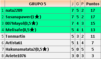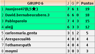 Deja un comentarioEn está página se irán publicando los resultados de las diferentes partidas, siendo ambos jugadores responsables de subirlos o de comprobar que ya hayan sido publicados insertando un COMENTARIO en la parte inferior de la pantalla (opción “Deja tu comentario”), indicando el nombre de los dos jugadores y los puntos obtenidos en la partida.