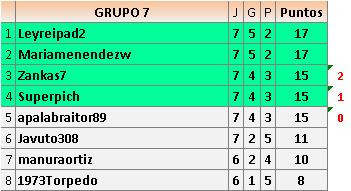6En está página se irán publicando los resultados de las diferentes partidas, siendo ambos jugadores responsables de subirlos o de comprobar que ya hayan sido publicados insertando un COMENTARIO en la parte inferior de la pantalla (opción “Deja tu comentario”), indicando el nombre de los dos jugadores y los puntos obtenidos en la partida.