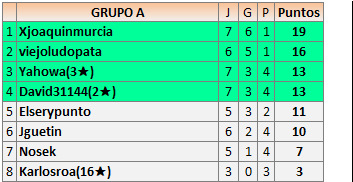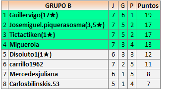 Deja un comentarioEn está página se irán publicando los resultados de las diferentes partidas, siendo ambos jugadores responsables de subirlos o de comprobar que ya hayan sido publicados insertando un COMENTARIO en la parte inferior de la pantalla (opción “Deja tu comentario”), indicando el nombre de los dos jugadores y los puntos obtenidos en la partida.