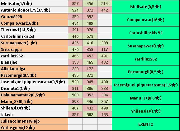 Los cruces entre vivimarqueaa vs aledip3 y juliancolmenarviejo vs carlosguey, están fuera de plazo publicados. Como consta en el reglamento, punto 5.1.