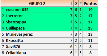Deja un comentarioEn está página se irán publicando los resultados de las diferentes partidas, siendo ambos jugadores responsables de subirlos o de comprobar que ya hayan sido publicados insertando un COMENTARIO en la parte inferior de la pantalla (opción “Deja tu comentario”), indicando el nombre de los dos jugadores y los puntos obtenidos en la partida.