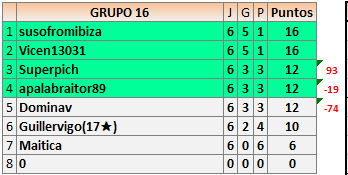 Deja un comentarioEn está página se irán publicando los resultados de las diferentes partidas, siendo ambos jugadores responsables de subirlos o de comprobar que ya hayan sido publicados insertando un COMENTARIO en la parte inferior de la pantalla (opción “Deja tu comentario”), indicando el nombre de los dos jugadores y los puntos obtenidos en la partida.