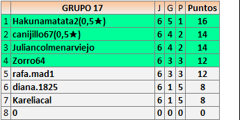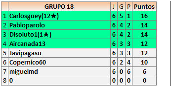 Deja un comentarioEn está página se irán publicando los resultados de las diferentes partidas, siendo ambos jugadores responsables de subirlos o de comprobar que ya hayan sido publicados insertando un COMENTARIO en la parte inferior de la pantalla (opción “Deja tu comentario”), indicando el nombre de los dos jugadores y los puntos obtenidos en la partida.